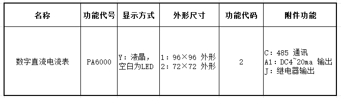 例如:1:PD6000-26D-CA1:96 外形直流電流電壓功能,帶通訊,帶 4~20mA 輸出