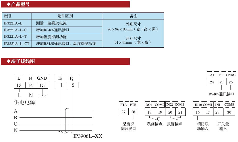 IP3221A-L6電氣火災監控探測器