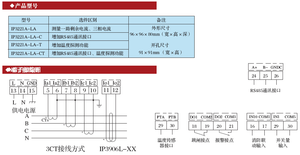 IP3221A-L3,IP3221A-L6,IP3221A-L9接線(xiàn)端子序號相同