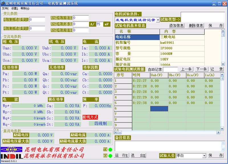 電機智能測試系統適用于與我公司生產(chǎn)的6000系列儀表通訊測試使用并生產(chǎn)固定格式的報表。用于記錄電機相電壓、線(xiàn)電壓、電流、有功功率、無(wú)功功率、功率因數、電能、視在功率、頻率等交流參數和勵磁電壓、勵磁電流、勵磁電壓最大值、勵磁電流最大值等直流參數。具有在線(xiàn)修改參數、全參數實(shí)時(shí)顯示功能、靈活的實(shí)驗電機基本信息編輯功能、自動(dòng)記錄數據功能、串口通信、監視各臺從機等特點(diǎn)。