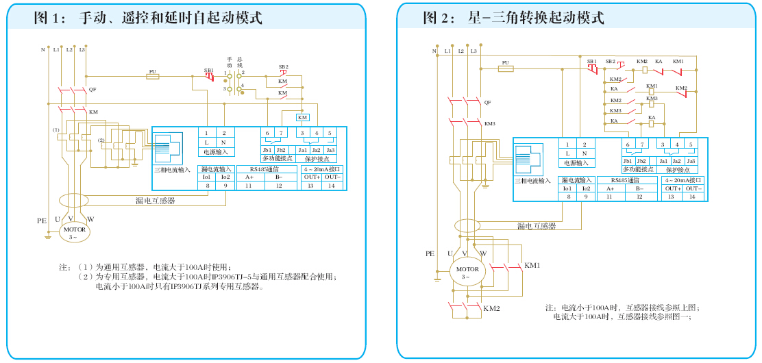 當電機額定電流大于5A時(shí),需外接專(zhuān)用或通用電流互感器。