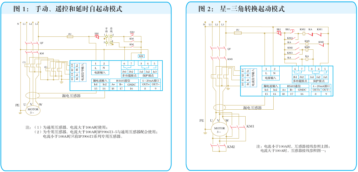 當電機額定電流大于5A時(shí),需外接專(zhuān)用或通用電流互感器。
