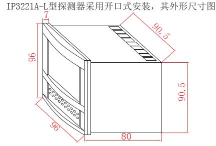 IP3221A-L型探測器采用開(kāi)口式安裝,其外形尺寸圖