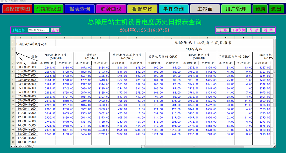 (5)各類(lèi)報表均生成Excel文件可存儲及導出(日報及月報于次日0:00和次月1日0:00自動(dòng)生成),要求實(shí)現通過(guò)手動(dòng)輸入產(chǎn)量后自動(dòng)算出各系統用電耗;