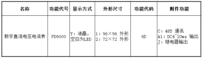例如:1:PD6000-26D-CA1:96 外形直流電流電壓功能,帶通訊,帶 4~20mA 輸出